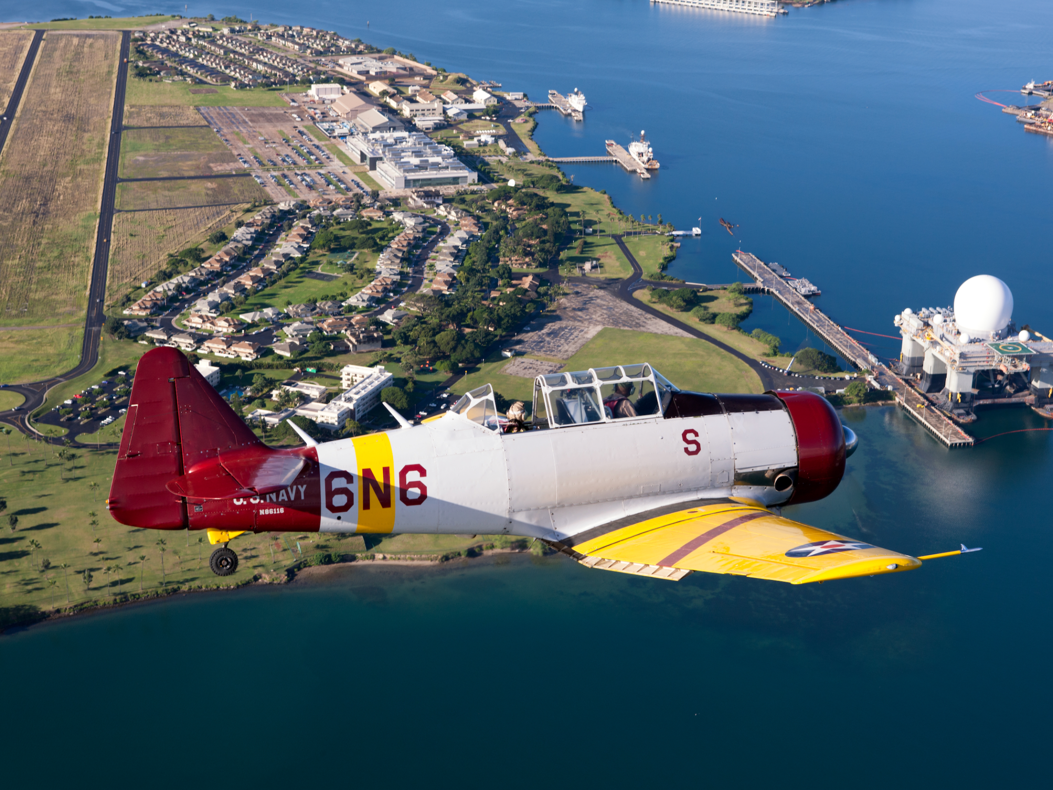 Pearl Harbor Warbirds offers the best Hawai‘i flight adventure tours available. Be immersed in the details of the infamous attack on Pearl Harbor and soar above the important sites that played a part in the “Day of Infamy.” Relive history as you retrace the steps of the Army and Navy airmen in the days following the bombing. Fly on some of the same routes the Japanese attackers used into the airfields at Wheeler, Kāne‘ohe and Bellows. There are many Honolulu air tours in Hawai‘i, but only one warbird airplane flight. Located in Honolulu, Hawai‘i, Pearl Harbor Warbirds provides a personal historical experience making it one of the best O‘ahu attractions.